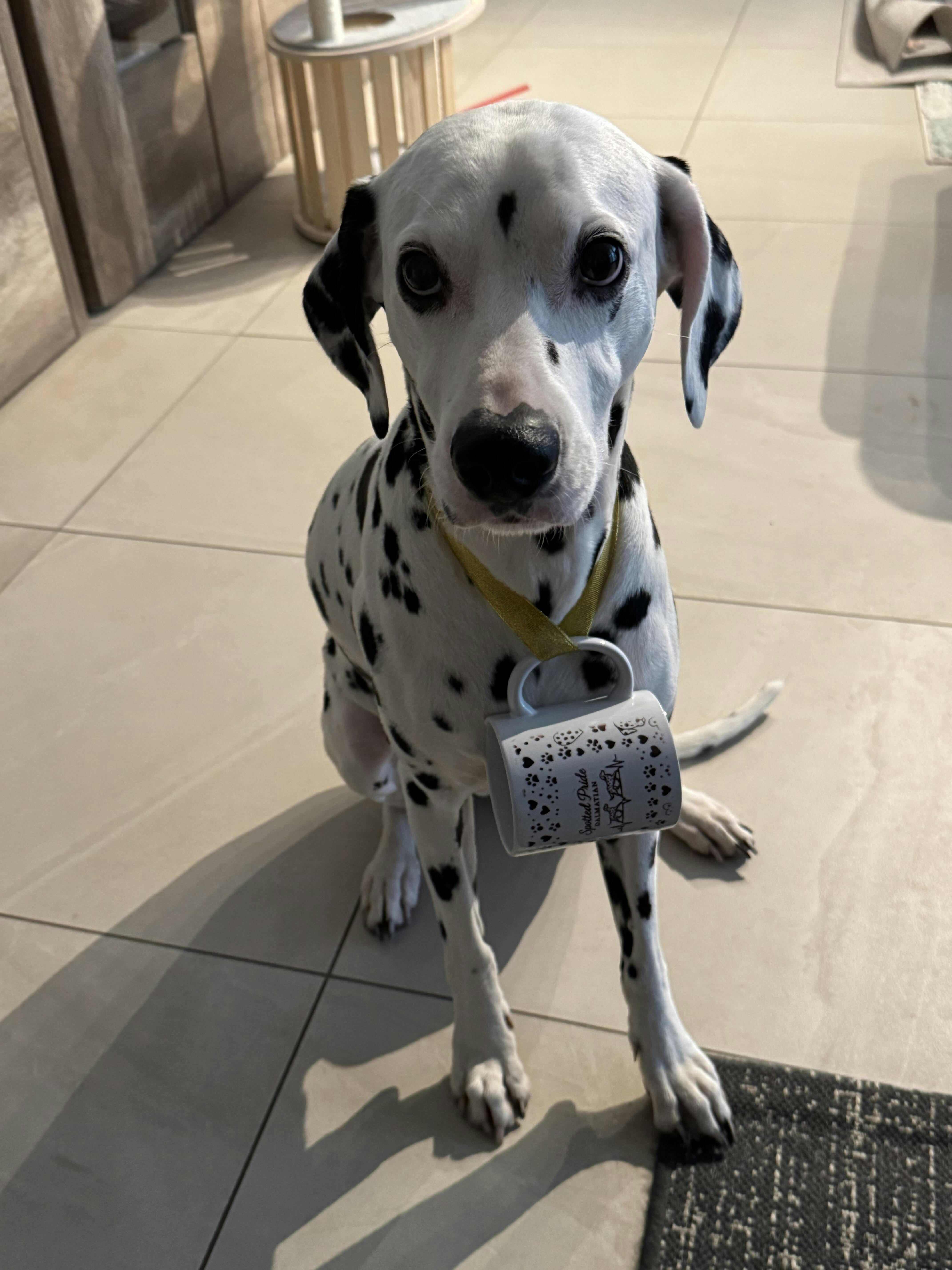 Hochwertige Keramiktasse mit Spotted Pride Dalmatian Logo